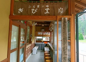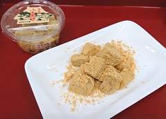|  |  |  | |  | 餅三彩 3個入 450円 1個(150円)からでも販売しております。 | 三色だんご 3本入 300円 1本(100円)からでも販売しております。 | おはぎ 2個入 300円 |  | |  | 揚げおかき 1袋 300円 | きび羽二重 1カップ 200円 | 切り餅 1袋 550円 | | |  きびもちソフトクリーム 300円 バニラベースに地元産のものを加工して作られた きび粉やもち粉を混ぜ合わせてできた ソフトクリームです。 ふんわり香ばしいような独特の風味が 人気を呼んでいます! (※冬期販売中止) |  | | | | | |